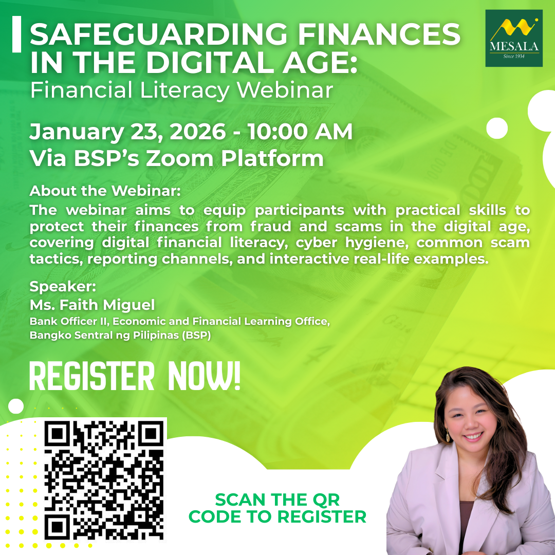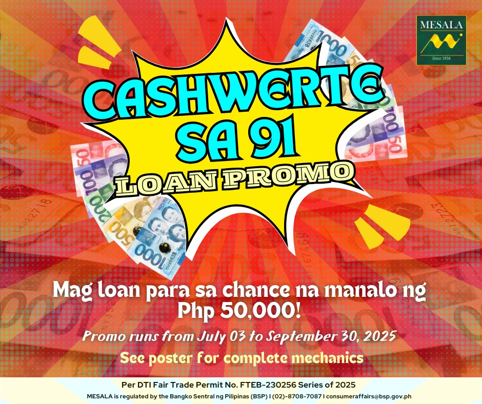 For loan inquiries, call 1622-6800 or email sales@mesala.com.ph